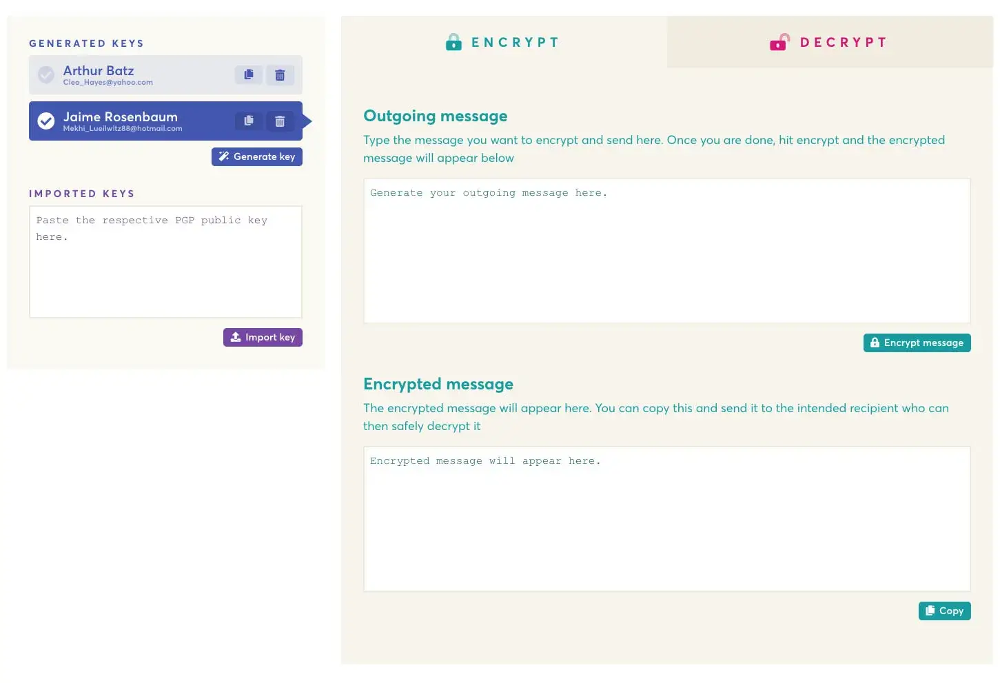 EncryptEasy est un outil de chiffrement PGP simple et facile à utiliser, qui gère toutes vos clés et celles de vos contacts. Le chiffrement devrait être simple. Développé avec Wails.
